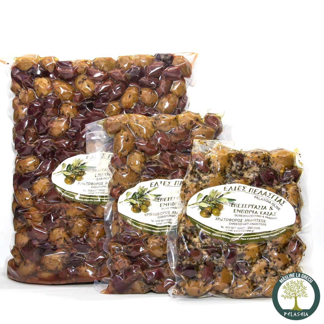- INGREDIENTE: masline amfissis verzi si kalamon intregi, cu samburi, usturoi, busuioc uscat, ulei de floarea soarelui, ulei de masline extravirgin.